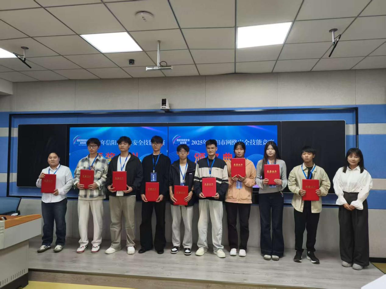 近日,2025年信阳市网络安全技能竞赛落下帷幕,信阳航空职业学院信息技术学院凭借扎实的专业知识和出色的团队协作,在本次竞赛中斩获三等奖一项、优秀组织奖两项,展现了学院在网络安全领域的教学成果与人才培养实力。